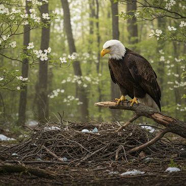 In nesting season, the eagle embodies the sacred cycles of life, renewal, and transformation, mirroring the spiritual journey we are all called to undertake.